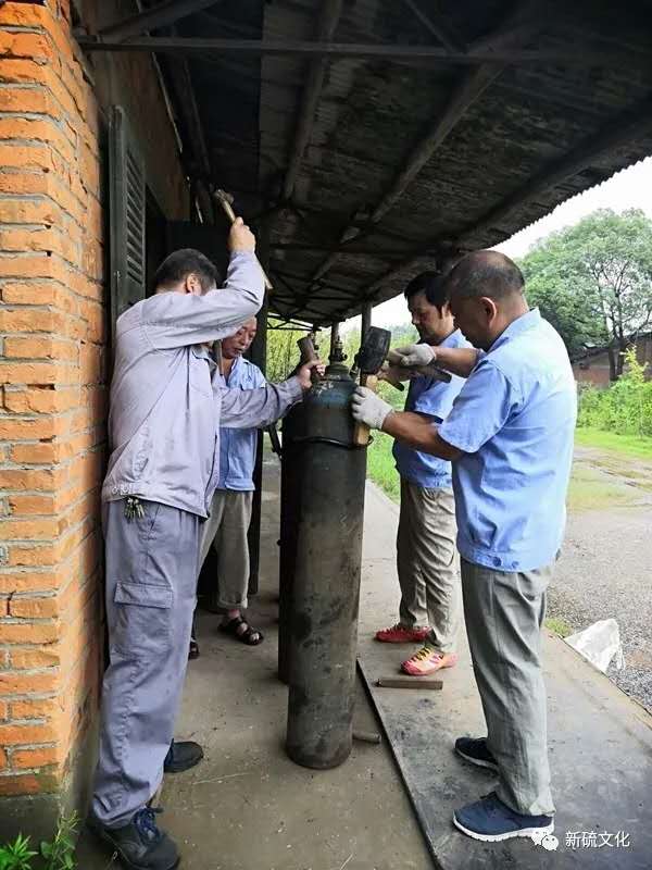 坐上皮卡車,我們一路顛簸來到一處偏遠的庫房,氧氣乙炔儲存點。路上,李部長給大家做了簡單的說明,原來今天是要給氣瓶套上防震圈,簡稱“套圈”。防震圈不屬于氣瓶的附件,所以入庫的氣瓶都沒有佩戴防震圈。但按照國家危險品運輸有關(guān)規(guī)定,在運輸和裝卸氣瓶時,必須佩戴防震圈。為了防止氣瓶在運輸過程中發(fā)生震動或碰撞危險,保證領(lǐng)用單位使用安全,倉儲部決定,自行購買防震圈并安裝。